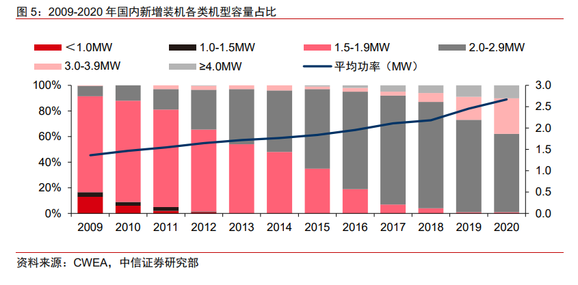 风电抢装退潮,政策因素趋弱,碳中和趋势成为启明星。“双碳战略”下,我国 2025年非化石能源占一次能源消费比重将达到 20%左右。根据《国家能源局关于 2021 年风电、光伏发电开发建设有关事项的通知》,我国将建立保障性并网、市场化并网等并网多元保障机制,2021 年非水可再生能源保障性并网规模不低于 9000 万千瓦,对于保障性并网范围以外的风电、光伏项目,可通过自建、合建共享或购买服务等市场化方式落实并网条件后,由电网企业予以并网。碳中和大背景下,风电加快发展趋势较为明确。