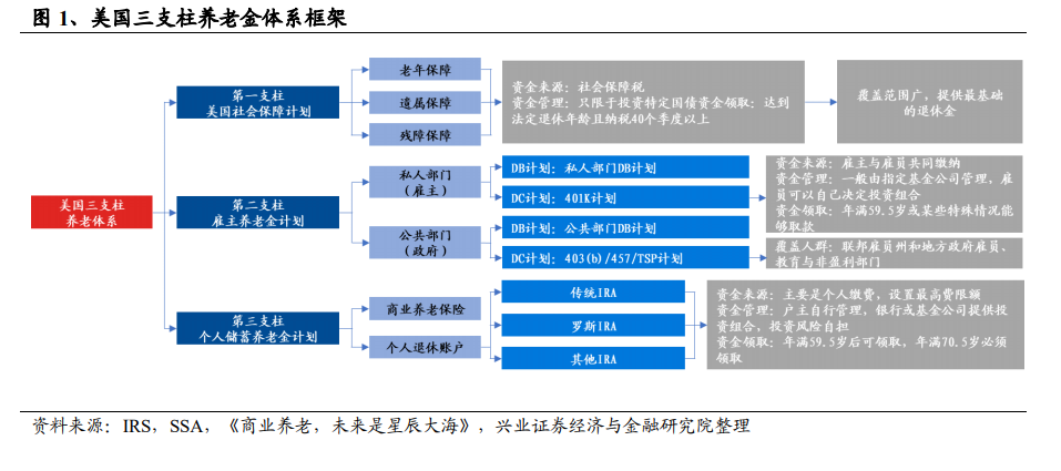 为应对养老压力,发达国家普遍建立起多层次养老体系。20 世纪 70 年代以前,经济快速增长以及婴儿潮带来人口结构优化的背景下,发达国家养老金体系运行良好,大幅提升了居民养老生活水平;但随着经济增长放缓、人口老龄化日益严重,养老金体系的供需结构逐渐失衡。面对不断加剧的社会养老压力,发达国家对养老金体系进行改革,通过建立多支柱养老金体系,特别是通过税收优惠、财政补贴等政策鼓励雇主养老金计划和个人养老金计划发展,强化私人养老金在养老保障体系中的地位和作用。在这之中,拥有世界上最大养老金市场的美国和与中国同处东亚文明圈的日本在养老金体系建设方面取得长足进步,其经验对我国有重要借鉴意义。