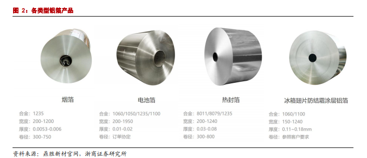 铝箔是一种铝压延材,铝箔主要是针对厚度而言,行业内通常将厚度小于 0.2mm 的铝材产品称为铝箔,通常边部纵切,并成卷交货。铝箔是柔软的金属薄膜,不仅具有防潮、气密、遮光、耐磨蚀、保香、无毒无味等优点,而且还因为其有优雅的银白色光泽,易于加工出各种色彩的美丽图案和花纹。