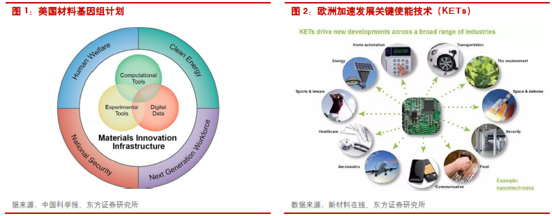 新材料未来将成为大国角逐的重点。新材料作为国民经济先导产业和高端制造及国防工业的重要保障,未来将成为各国战略竞争的焦点。当前在新一轮科技革命和产业变革大势下,全球新材料产业格局发生重大调整。新材料与信息、能源、生物等高技术加速融合,互联网+、材料基因组计划、增材制造等新技术新模式蓬勃兴起,新材料创新步伐持续加快,国际竞争日趋激烈。在此大背景下,欧美日俄韩等全球20 多个主要国家纷纷制定了与新材料相关的产业发展战略,启动了100 多项专项计划,大力促进本国新材料产业发展。相对而言,我国新材料产业起步晚、底子薄,材料先行战略没有得到落实,核心技术与专用装备水平相对落后,关键材料保障能力不足,整体仍处于培育发展阶段。