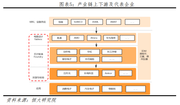 从运作模式来看,目前主流两种运作模式,即整合模式与垂直加工模式。整合模式又称 IDM(Integrated Device Manufacturer),早期的芯片企业多为 IDM,以英特尔与三星为代表业务范围覆盖整个产业链。但根据摩尔定律,同等价格下,集成电路上容纳的晶体管元器件数目每 18-24 个月翻一倍,性能也随之提升一倍。这一定律揭示了半导体行业发展迅速的同时,也暗示整个行业需要不停的投入新型材料与仪器研发更高性能芯片。为了减轻投资压力与降低失败风险,上世纪九十年代开始,IDM逐渐拆分成单环节加工,形成以设计为主的 Fabless 模式、晶圆代工Foundry 模式和纯封测检验模式。