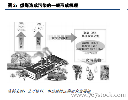 煤炭是造成空气污染的重要来源。煤炭在燃烧时会产生包括二氧化硫、氮氧化物、颗粒物、一氧化碳在内的气体污染物,同时所排放的烟尘中有许多难以去除的超细颗粒,是 PM2.5 的主要来源;二氧化硫和氮氧化物,进一步与空气中其他污染物进行复杂的大气化学反应,形成硫酸盐、硝酸盐二次颗粒,由气体污染物转化为固体污染物,加剧大气污染。近年来各省市环保部门加快对大气污染源的解析工作,观察空气质量排名较差的前10 位城市的 PM2.5 来源可以发现,燃煤污染首当其冲。