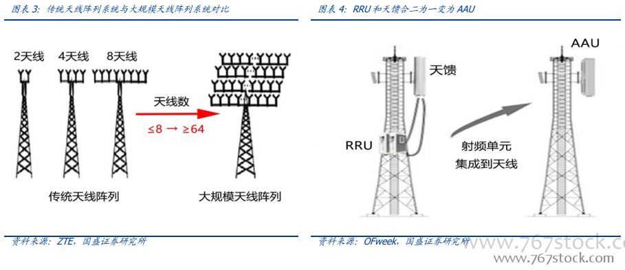 5G 时代,滤波器将从金属腔体全面转向陶瓷介质,技术路线完全革新。因为(1)基站天线由 2T2R、4T4R 向 64T64R 发展,一面天线所需滤波器由 2 个变为 64 个;(2)RRU和天馈合二为一成为 AAU。因此 5G 设备的重量和体积相对于 4G 要求将更为严格,滤波器必须小型化、集成化,体积更小、更轻的陶瓷介质滤波器将取代传统的金属腔体滤波器成为主流。