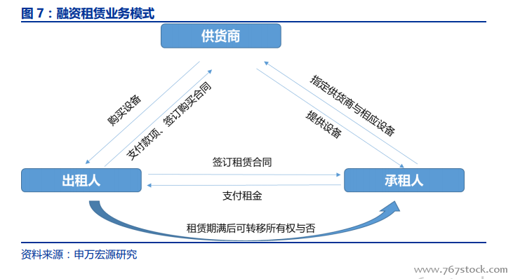 2017 年-至今:经济增速放缓,行业增速同步趋缓、等待转型。融资租赁与经济景气度具备较高相关性,当前阶段几方面因素对行业形成转型压力:1)经济增速放缓:经济增速中长期将进入逐步放缓阶段,GDP 中高速增长将成为新常态;2)产业结构升级:经济产业结构将逐步出现变革,过去以传统经济主导的结构将逐步向传统产业升级与新兴产业发展过渡,融资租赁必须配合产业结构升级共同谋求发展;3)直接融资工具竞争:资本市场加大金融体制改革、推动直接融资发展,多样化创新型融资工具如资产证券化、项目收益债等均与融资租赁竞争。