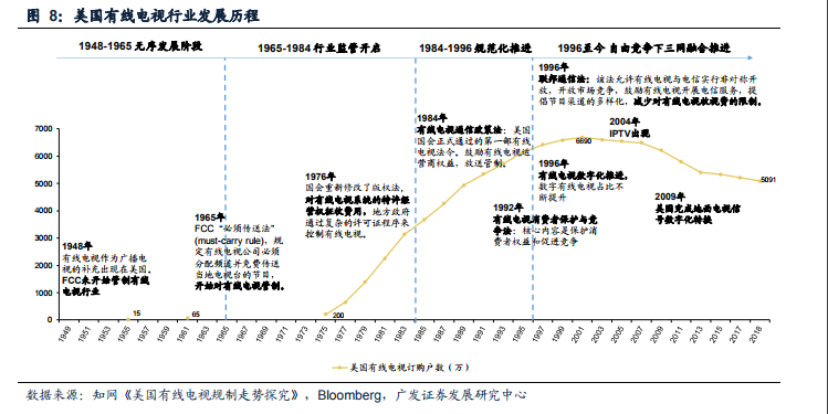 融通局面的打开:诉讼方式获取权利,地区性管制放松。1984年《有线电视通信政策法案》颁布,出于对有线电视运营商的保护,该法案明令禁止电信公司从事视频服务、视频分类广告以及视频节目等信息服务。但部分电信公司依托自身先进的光纤电缆和视频压缩技术开始制作节目供自己使用或直接卖给批发商。