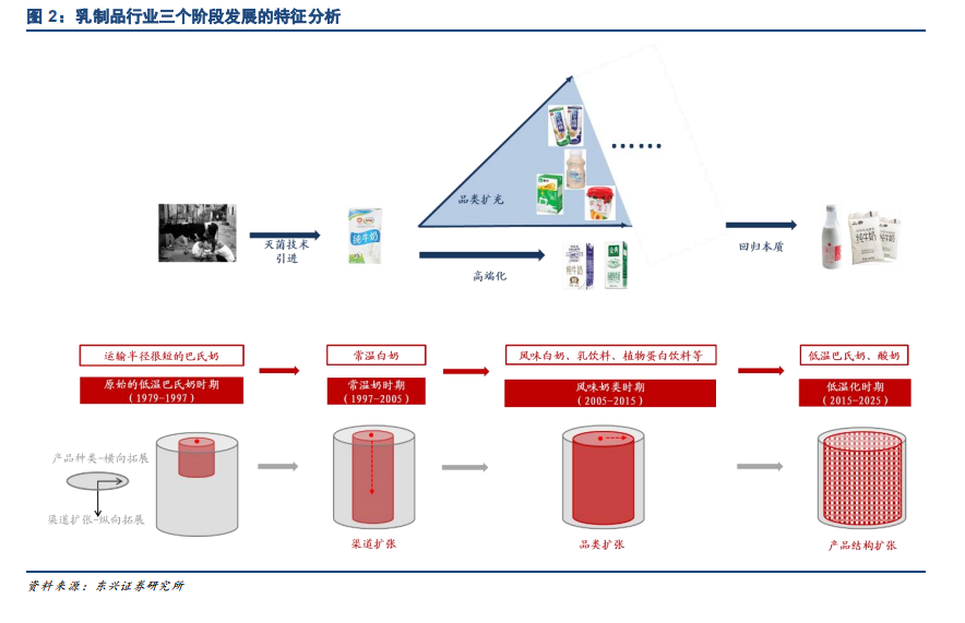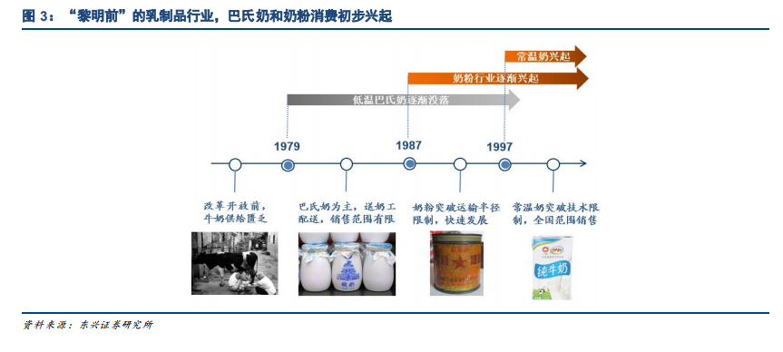 1979-2005 年:牛奶初体验,常温奶突破巴氏奶运输半径限制,成就全国性的乳企。1979 年改革开放前,受制于整体经济的发展状况,奶制品的供给较为匮乏,消费者饮奶意识未经塑成,乳制品行业整体规模较小。改革开放后,主要是以低温巴氏奶配送为主,由于杀菌技术不成熟、保质期短、保存条件较差等原因,低温巴氏奶的运输和销售半径较小,故巴氏奶的销售主要是以小范围的配送为主,奶源主要来自于小规模奶农自家散养牧场。