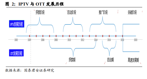 IPTV:由终端电视机+机顶盒进行流媒体接收和解码。交互式网络电视以电视机为显示终端,中央和省两级 IPTV 集成播控平台引入内容并集成播控,规范对接电信运营商利用互联网架设专网的定向传输通道,向公众提供广播电视节目等。IPTV 由广电及电信运营商建立 IP 专网承载 IP 化的数字视频内容,由终端电视机+机顶盒进行流媒体接收和解码。