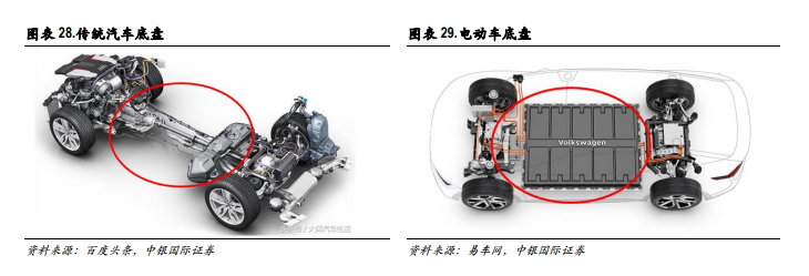 电池盒是电动化底盘主要新增产品。电动化是汽车产业发展方向,新能源汽车的市场份额快速提升,也将为底盘零部件带来新的机遇。对比传统燃油车和新能源汽车的底盘系统,我们可以发现,传动系将会发生较大变化,制动系需要将机械真空泵替换成电子真空泵,行驶系和转向系基本一致,此外需要新增电池盒等零件。