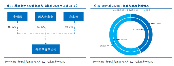 截至 2020 年一季度末,公司第一大股东仍为李明煕,持股 18.22%,与 2019 年末持平,其余两位持股 5%以上的大股东持股比例有所变动,具体表现为国民养老金持股比例减少 0.5%至13.6%;郑永振持股比例增加 0.51%至 10.34%,变动后大股东整体持股比例上浮 0.01%,总体保持稳定。其中,李明煕为韩国三星集团创始人李秉哲之女,郑永振为李秉哲之子李健熙的外甥,家族关系紧密。三大持股 5%以上股东总持股比例为 42.16%,其余股份大多为机构投资者持有。