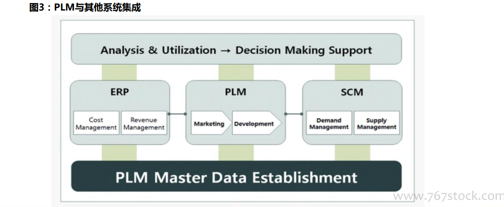 PLM是企业经营管理的集成支撑环境。使用PLM软件真正管理一个产品的全生命周期,需要与企业经营管理的多系统进行集成:只有PLM可以最大限度地实现跨越时空、地域和供应链的信息集成,在产品全生命周期内,充分利用分布数据资源和企业智力资产。因此,PLM系统的价值取决于在企业内能否与ERP、SCM、CRM来集成使用,组成PLM生态系统,实现更全面意义上的协同工作。