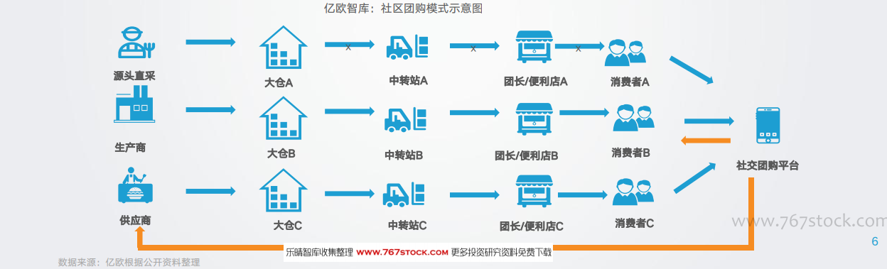 社区团购最大的特点是基于团长和供应链打造社区生鲜直供,取代了传统流通领域层层批发加价模式。社区团购在社交电商的基础上,依靠社区和“团长”资源实现商品流通的新零售模式。社区团购平台雇佣团长,部分为全职员工,并为团长提供商品、物流、系统、运营、品牌、售后等全方位支持。团长基于社区邻里关系,维护社区居民用户,负责建群运营、推荐产品、售后服务。社区团购最大的特点,即是交易场景的分布式,在不同的微信群中,所以平台的营收等于每一个微信群的营收总和。越是下沉市场,分布式的做法反而越是高效,传统中心式的B2C电商反而难以下沉。