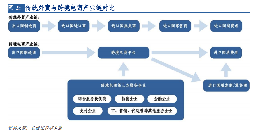 环境赋予成长土壤,多因素助推持续增长。跨境电商行业借助互联网技术进步实现商品和服务的跨境交易并淡化国际贸易国界,在消费全球化、产业升级转型的浪潮中具备强劲的成长能力。展望未来,得益于产业基础、技术进步、信用保障、消费升级、政策支持五大推动力,跨境电商行业成长能力仍具备较强的持续性。