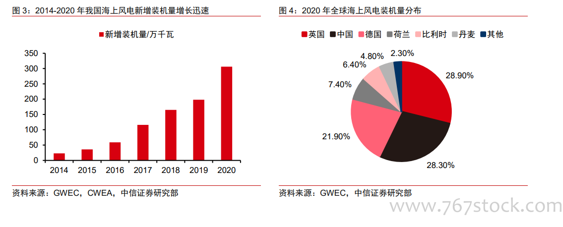 风电抢装退潮,政策因素趋弱,碳中和趋势成为启明星。“双碳战略”下,我国 2025年非化石能源占一次能源消费比重将达到 20%左右。根据《国家能源局关于 2021 年风电、光伏发电开发建设有关事项的通知》,我国将建立保障性并网、市场化并网等并网多元保障机制,2021 年非水可再生能源保障性并网规模不低于 9000 万千瓦,对于保障性并网范围以外的风电、光伏项目,可通过自建、合建共享或购买服务等市场化方式落实并网条件后,由电网企业予以并网。碳中和大背景下,风电加快发展趋势较为明确。