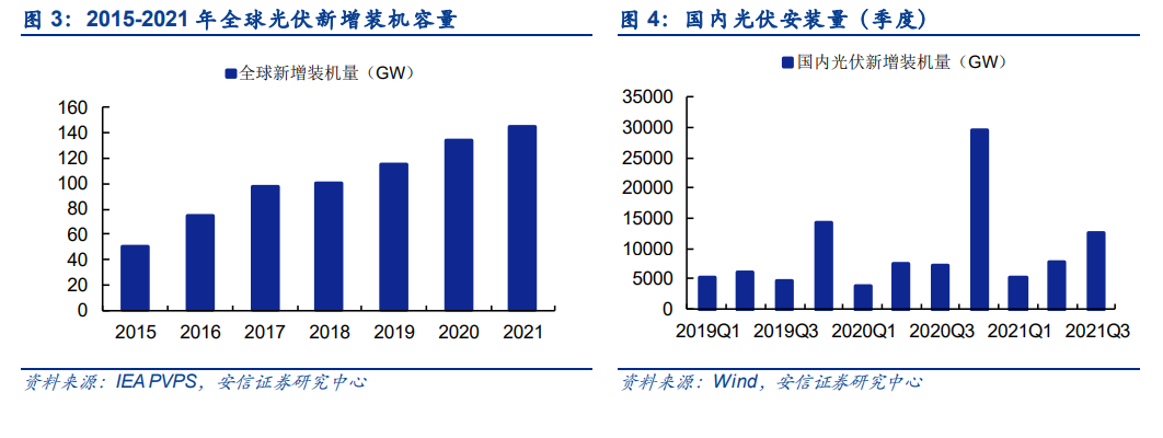 光伏方面, 根据能源局月度调度数据显示,2022 年 1 月全国新增光伏装机容量 7.38GW,同比增长 212%,其中分布式新增约 4.69GW,同比增加 252%,集中式新增装机量 2.68GW,同比增加 160%。中国光伏行业协会名誉董事长王勃华于 2 月 23 日“光伏行业 2021 年发展回顾与 2022 年形势展望线上研讨会”中表示,2021 年我国光伏新增装机量 54.88GW,同比增长 13.9%,其中分布式新增 29.28GW,占比历史上首次突破 50%达到 53.4%,在国内巨大的光伏发电项目储备量推动下,预计 2022 年我国光伏新增装机量将达到 75-90GW,2022-2025 年我国年均新增光伏装机量将达到 83-99GW,到 2025 年我国光伏新增装机量将提升至 90-110GW,而全球 2022-2025 年光伏年均新增装机将达到 232-286GW,到 2025年有望达到 270-330GW。在政策大力支持下,发展日新月异的光伏产业将带动对半导体功率器件的需求。据 Yole 预测,IGBT 市场规模将由 2020 年 54 亿美元增长至 2026 年的 84亿美元,年均复合增长率达到 7.5%,IGBT 市场景气度持续向上。