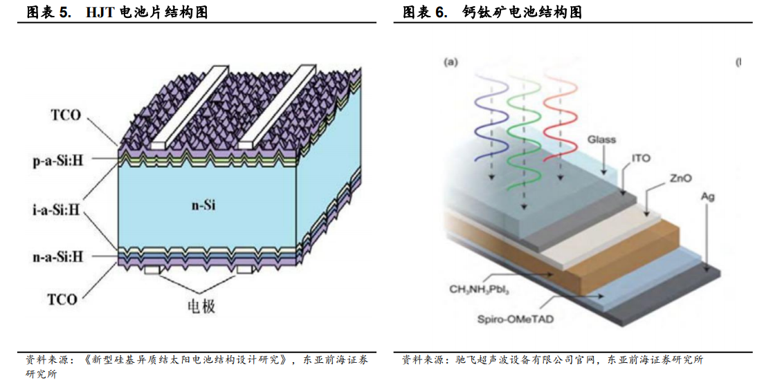 光伏靶材主要用于制备光伏电池片中所需要的薄膜。以 HJT 电池片为例,在 HJT 电池片结构中具有 TCO 薄膜层,该薄膜承担者透光以及导电的重要作用。应用物理气相沉积(PVD)技术,使离子和靶材表面的原子离开靶材,在基底上形成透明导电薄膜。以钙钛矿电池结构为例,钙钛矿电池是由多层薄膜以及玻璃等构成。例如 ITO 薄膜就需要光伏靶材进行制备。
