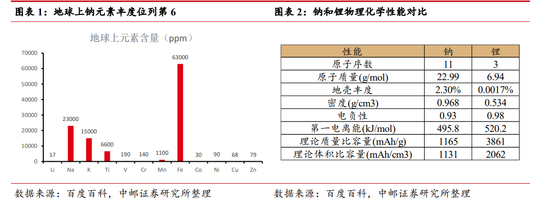 锂资源短缺,钠含量丰富优势体现。早在 20 世纪 80 年代,钠离子电池就已经被短暂研究过,但是由于当时锂离子电池在能量密度方面更具有明显的优势,广泛应用于商业化生产中,因此钠离子电池的研究工作被搁置了。近年来,由于锂资源短缺造成锂离子电池的成本增加,限制了其在大规模储能设备领域的应用。因此,原料丰富且成本低廉的钠再次引起了科学家们的兴趣。
