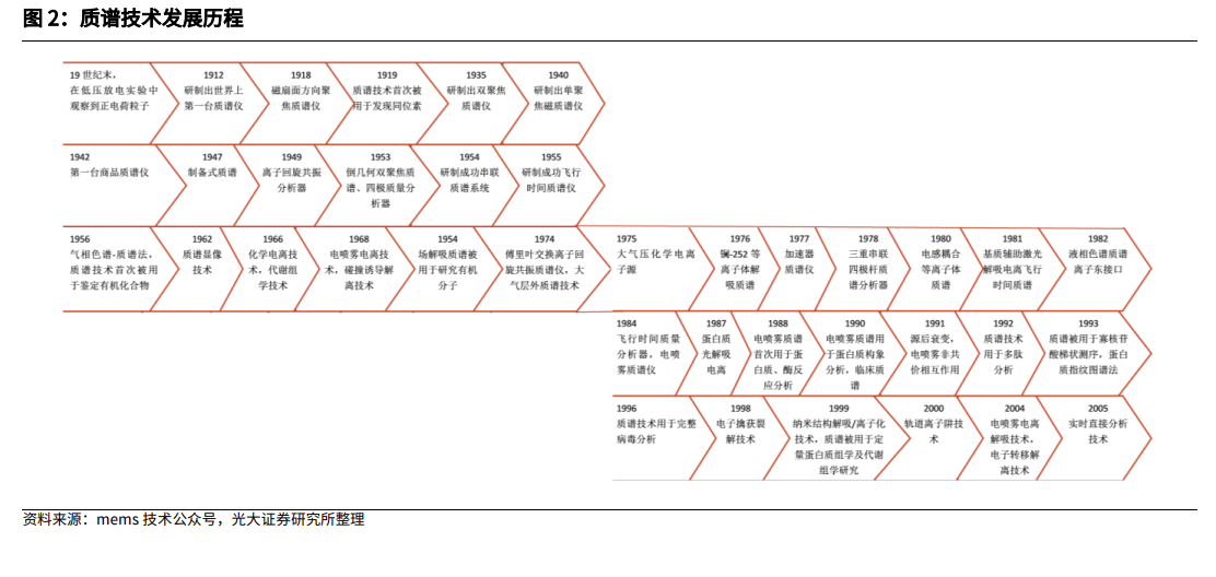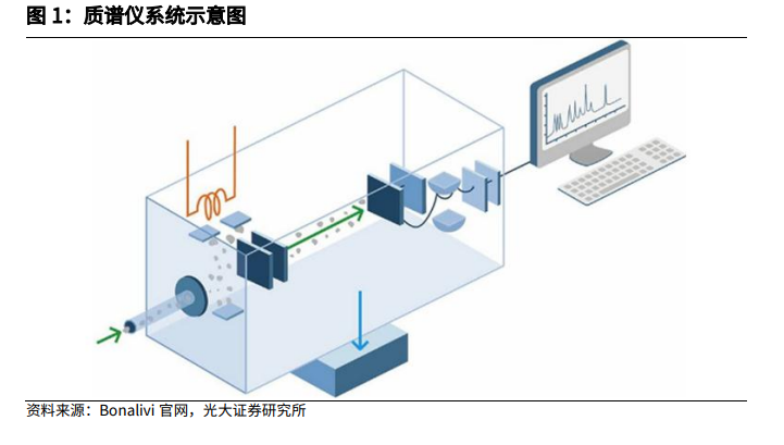 质谱仪是一种通过分析待测物质量获取其结构信息的仪器,基本原理为将分析样品(气体、液体、固相)电离为带电离子,这些离子被检测器检测后即可得到质荷比与相对强度的质谱图,进而推算出分析物中分子的质量。通过质谱图及分子量测量可以对分析物进行定性分析,利用检测到的离子强度可以进行精确的定量分析。