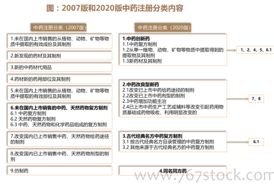近年中药注册管理制度持续优化,中药创新药概念得到明确界定。新版中药注册分类将“中药创新药”单独列出,进一步明确中药创新药概念,涵盖复方制剂、中药材及其制剂,新药材及其制剂。2022年11月药监局发布的《中药注册管理专门规定(征求意见稿)》中再次提出支持研制基于古代经典名方、名老中医方、医疗机构中药制剂等具有丰富中医临床实践经验的中药新药。