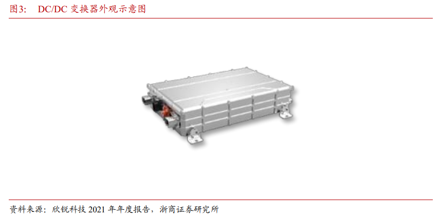 DC/DC 变换器(直流-直流变换器)从动力电池取电,给车载 12V 或 24V 低压电池充电。DC/DC 可以将动力电池输出的某一数值的直流电源电压转化为另一数值的直流电源电压,起到调节电源输出、稳定电源电压的作用。通常可以分为三种:高压转高压 DC/DC 变换器、高压转低压 DC/DC 变换器、低压稳压 DC/DC 变换器。